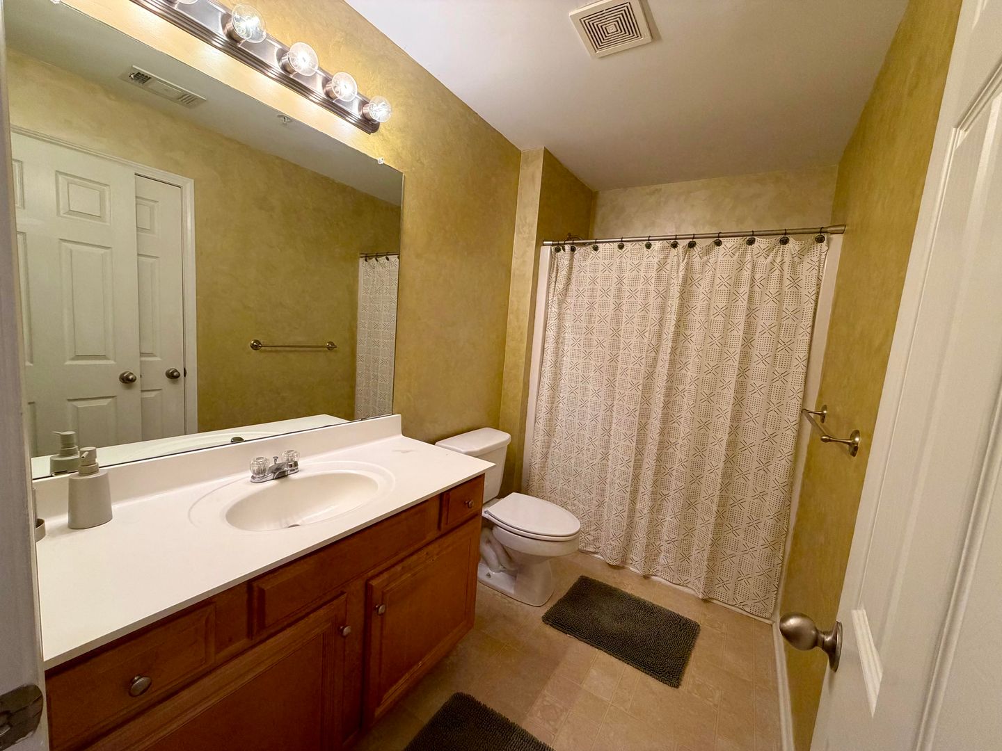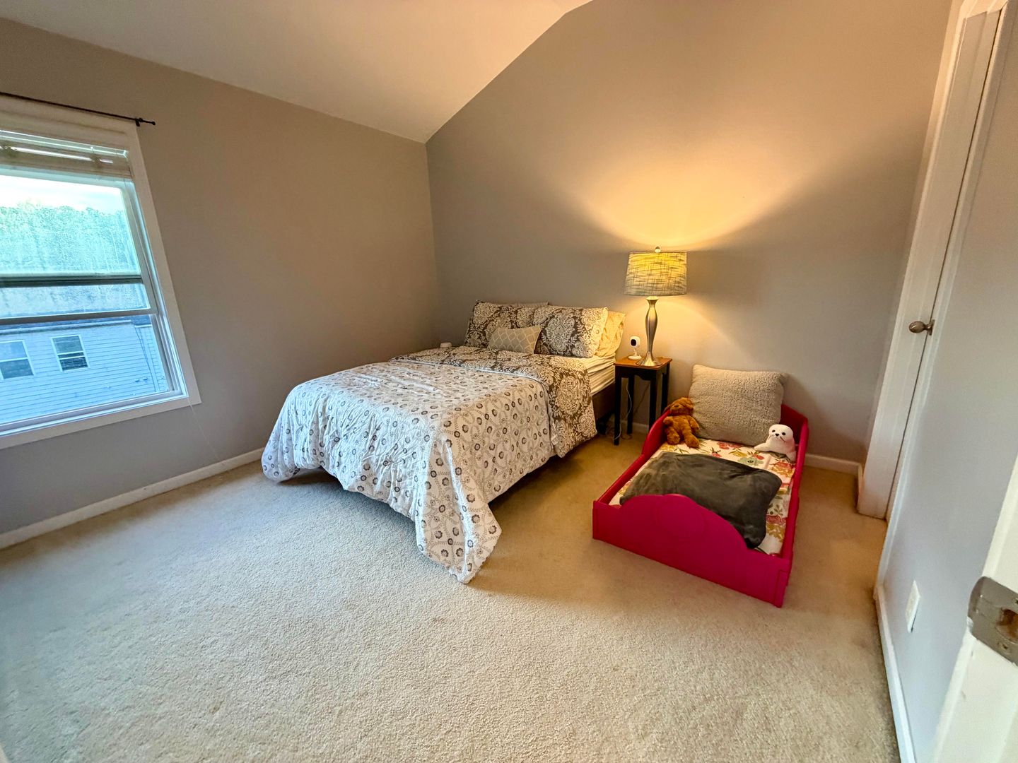 The oversized primary suite includes a large walk-in closet and a private en-suite bathroom with a soaking tub and separate shower. Two additional generously sized bedrooms share a full bathroom, providing plenty of space for family, guests, or a home office.