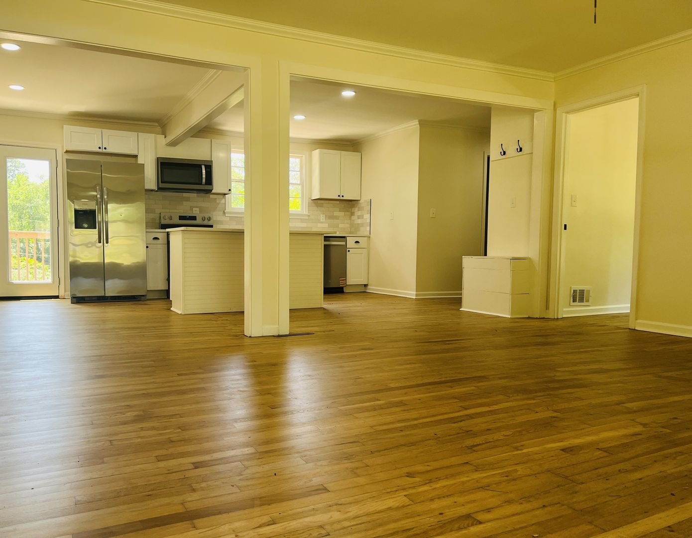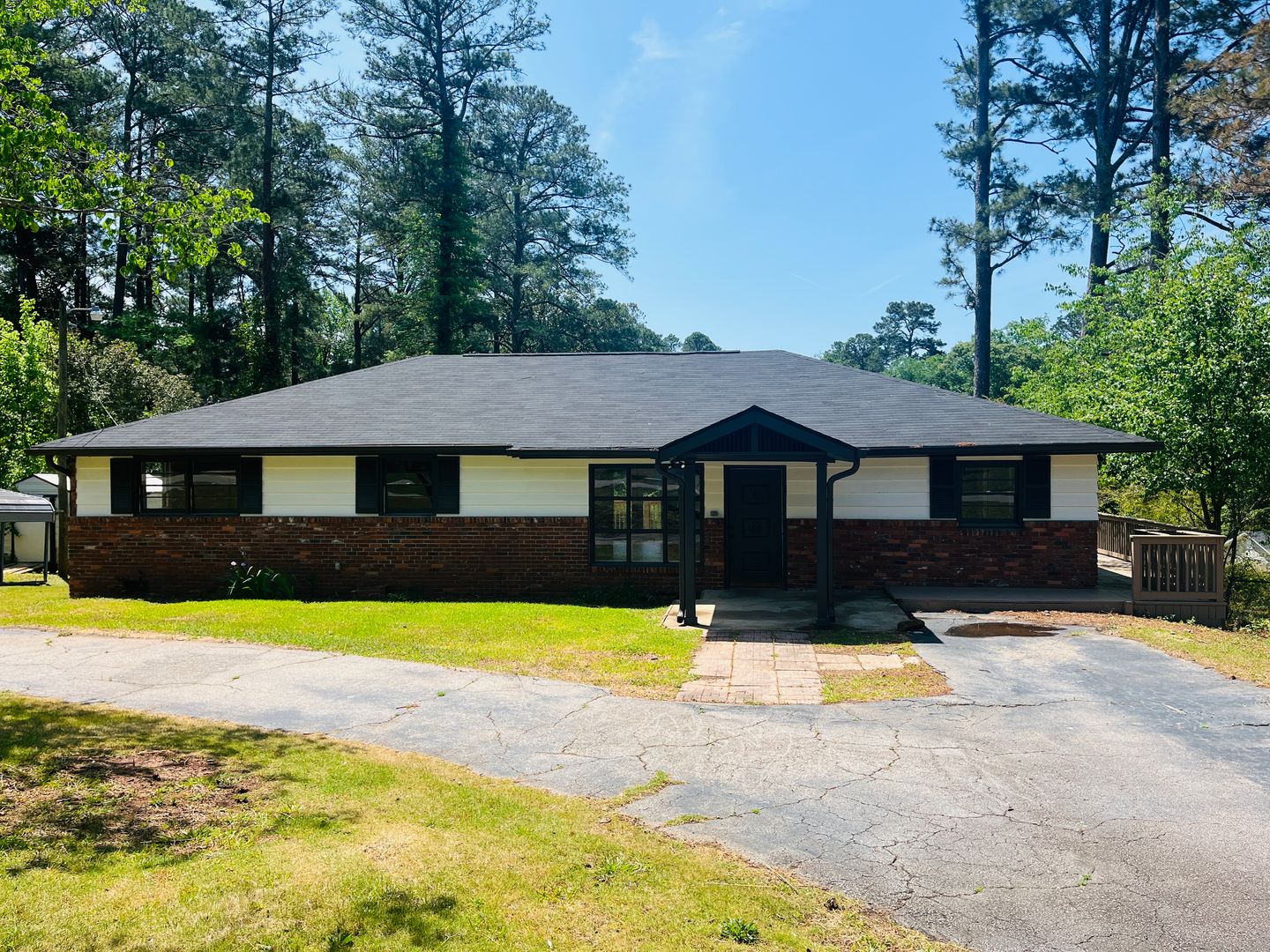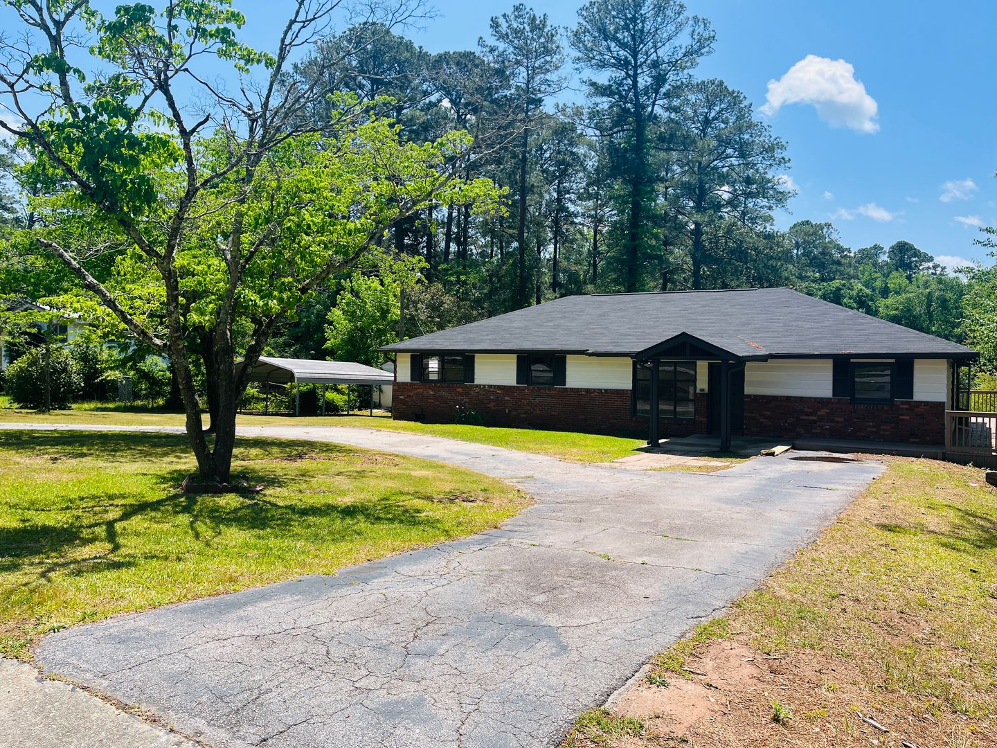 This charming 4 bedroom, 3 bathroom ranch has lots of thoughtfully designed touches throughout to love! Enjoy the quiet serenity of the wooded and private yard from your huge wrap around porch. There’s a large circular driveway, lots of parking space, and a covered carport on the side. Inside you’ll find a spacious open floorplan full of natural light. You’ll love the charming built-in coffee bar, the large bar stool kitchen island that is perfect for entertaining, along with modern stainless steel appliances, solid surface countertops, subway tile backsplash and new cabinets. Tons of closet and cabinet space in this home! The lovely arched doorway to the master bathroom, beautifully tiled showers and bathroom floors, and the original natural hardwood floors throughout this home add so much character to this fully remodeled, modern home. This home is located in the desirable community of Beverly Hills! Truly a must see!